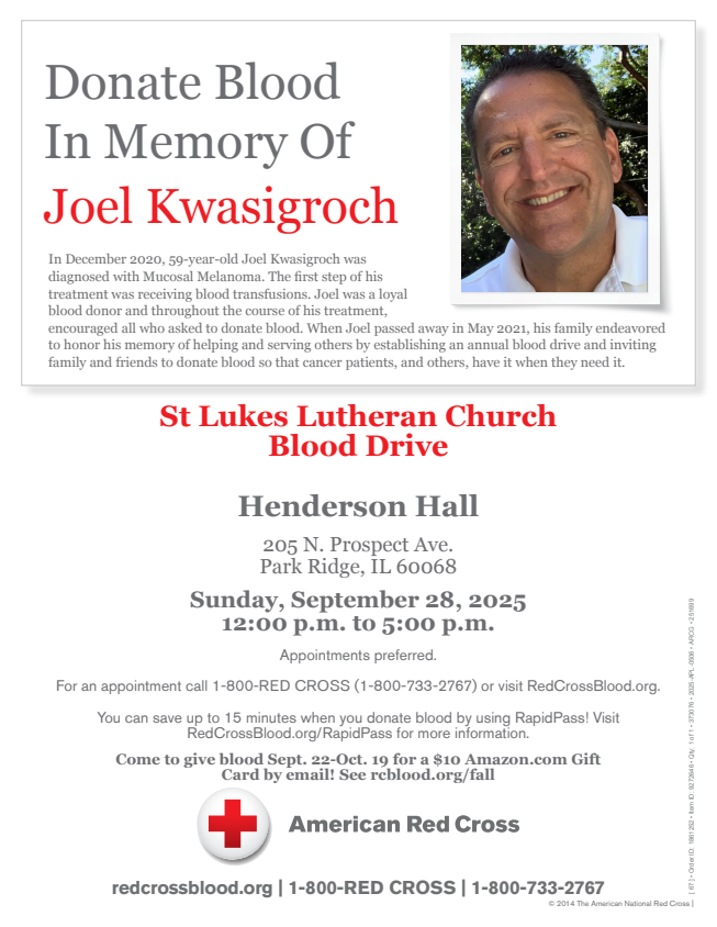 Blood Drive Share Share on FacebookShare on Facebook TweetShare on Twitter Share on LinkedInShare on LinkedIn Share on WhatsAppShare on WhatsApp Related PostsLutheran/Catholic Morning DialogueMarch 4, 202640/40 Food DriveFebruary 25, 2026Midweek Lent ServicesFebruary 18, 2026