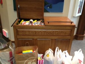 The Blessing Box, built by an Eagle Scout and placed outside the church, is a another way for people experiencing food insecurity to get food items and toiletries easily any time of the day or night. Those who can give are asked to keep it supplied for those who are in need. Guidelines for Donations to the Blessing Box.